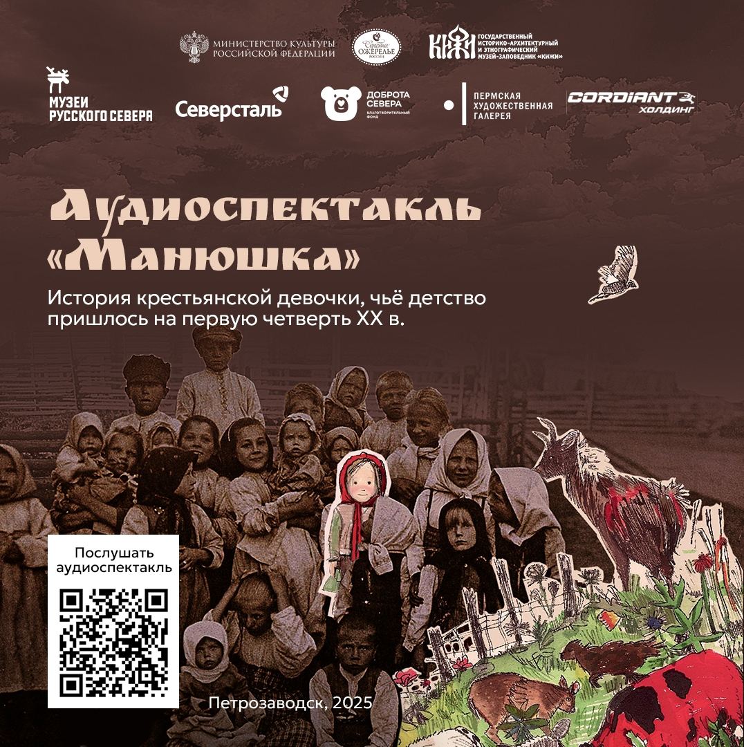 Участница проекта «Экспозиционно-выставочная деятельность» Анна Исакова из музея «Кижи» поделилась новостью — в рамках выставки «Детство — дело серьезное», которая доработана при поддержке экспертов, вышел аудиоспектакль «Манюшка»