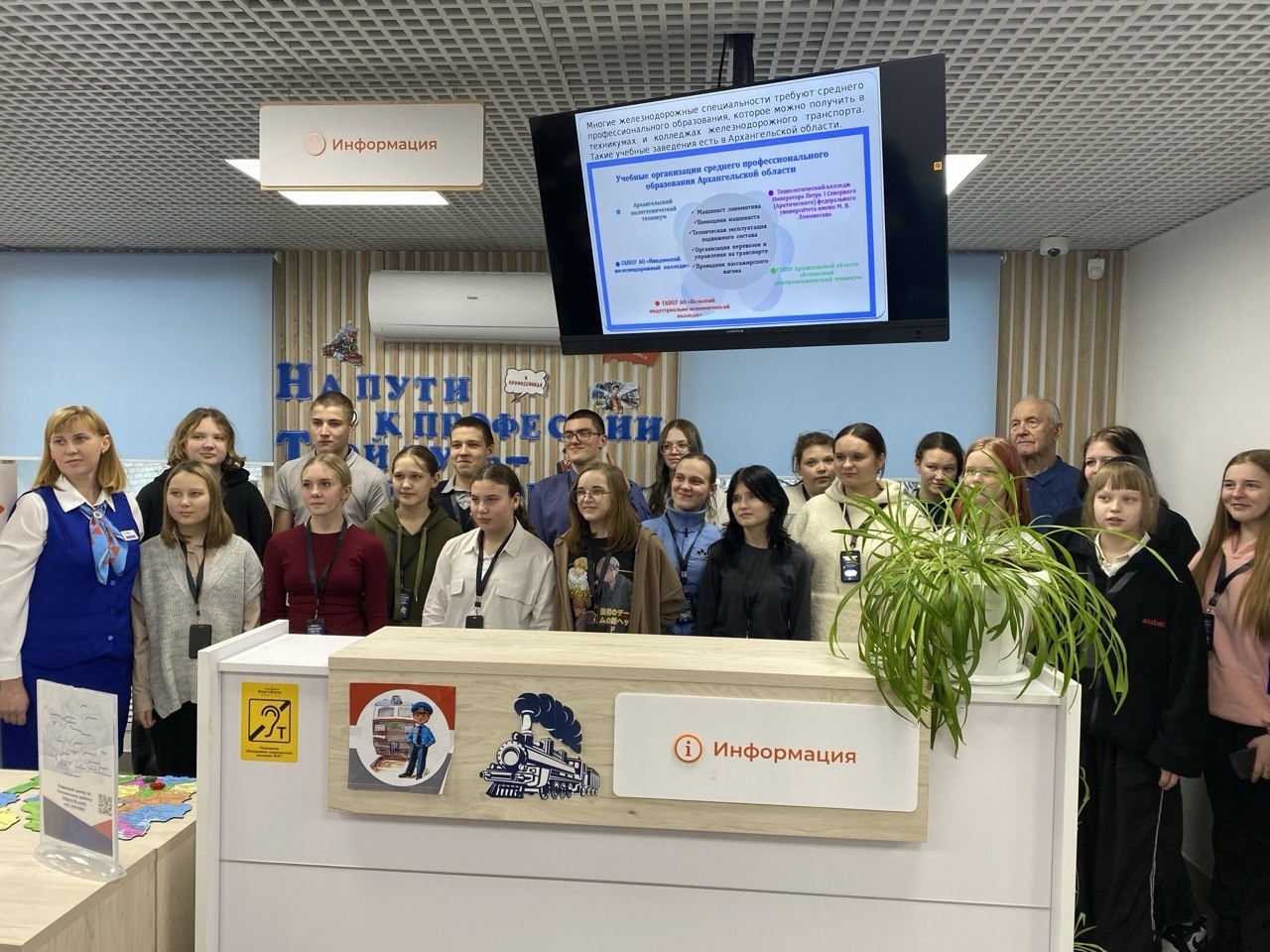 22 октября 2025 года обучающиеся 8 классов Лесозаводской средней школы протестировали профориентационный квест «Приключения железнодорожника Максимыча». Ребята вовлеклись в железнодорожную краеведческую историю, которая произошла в посёлке 35 лет назад, и обошли следующие локации: станцию, перрон, вокзал, кадровый центр и экспозицию музея. Каждая локация рассказывала о какой-то железнодорожной профессии. В музее участники смогли окунуться в виртуальную реальность «Кабина будущего локомотива» и побывать на станции Коноша в будущем.